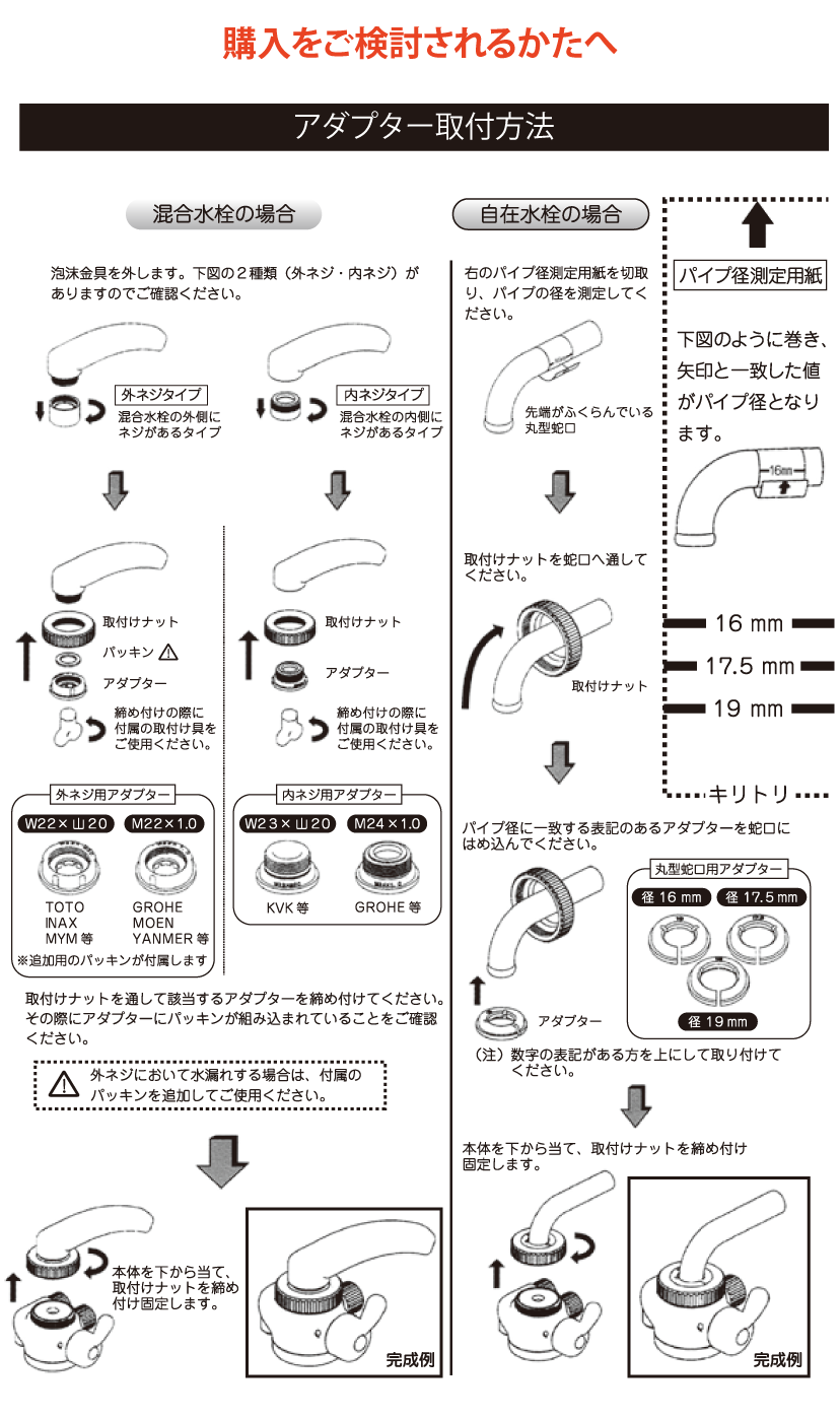 | 取付方法 | 蛇口コック取付1WAYタイプ |